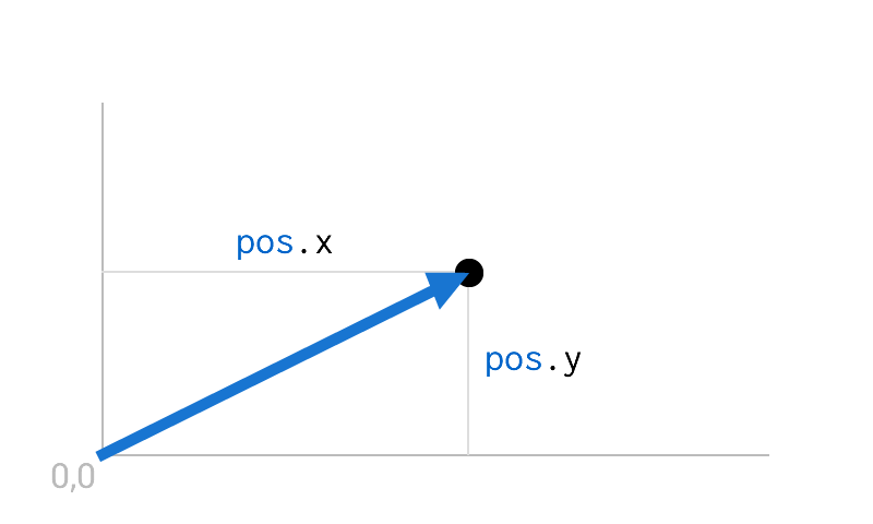Il vettore vel non indica solo la velocità (determinata dalla sua lunghezza) ma anche la direzione di spostamento (determinata dal rapporto fra le coordinate x e y). Il nome "vel" è però quello più usato negli esempi che si trovano online.